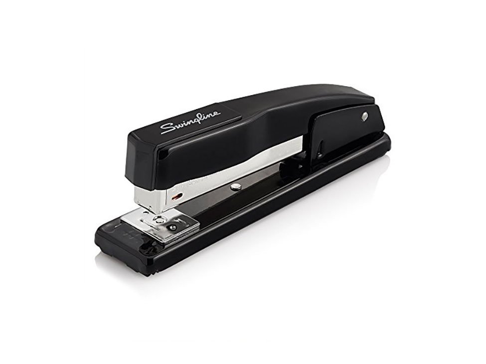 Standard black desk stapler with a full strip of staples. Ideal for use at home, in school, or at the office.